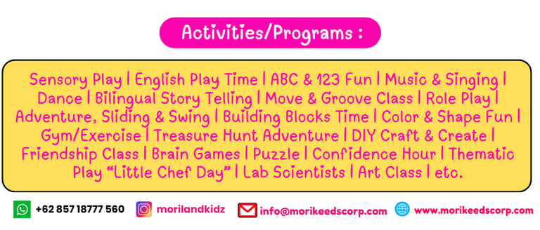 Di Moriland Playground, anak-anak tidak hanya bermain tetapi juga belajar mengenal dunia sekitar dengan cara yang positif dan interaktif di antaranya :