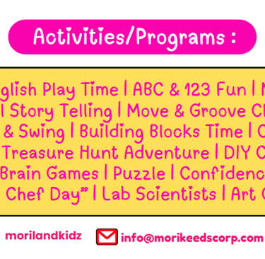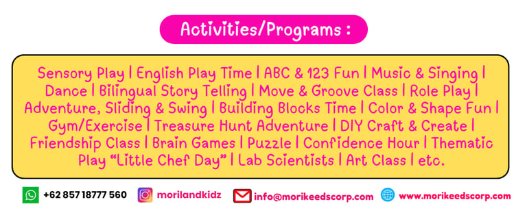 Di Moriland Playground, anak-anak tidak hanya bermain tetapi juga belajar mengenal dunia sekitar dengan cara yang positif dan interaktif di antaranya :